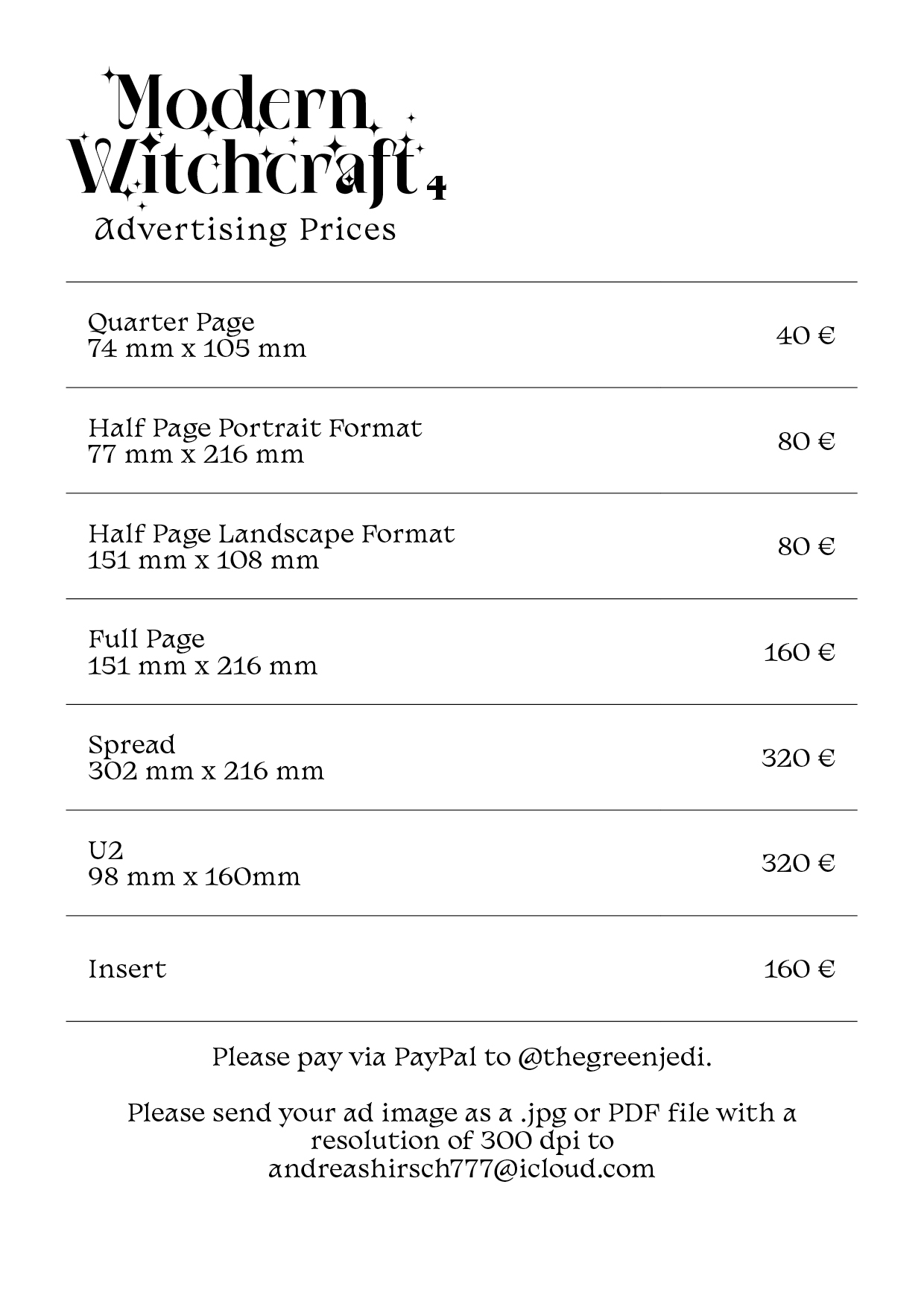 The zine “Modern Witchcraft” gives diverse voices space to express their thoughts on magick, nature mysticism, queerness, mindfulness, community building, happiness and sustainability. Every magick practitioner is invited to participate. You are welcome to submit an article and/or book an advertisement.
